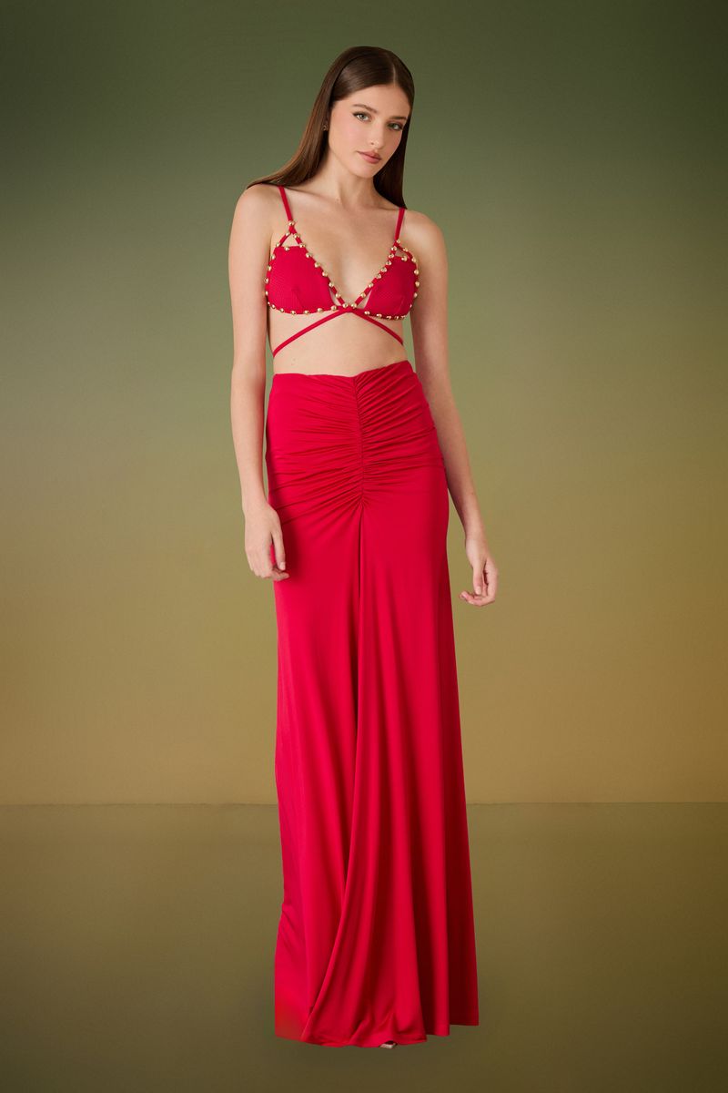 O tecido texturizado adiciona profundidade ao tom Roma, garantindo que a cor se destaque de forma mais elegante e luxuosa.