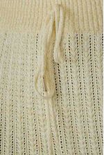 O tricot confere uma textura artesanal, macia e respirável. Os pontos vazados criam uma leve transparência na