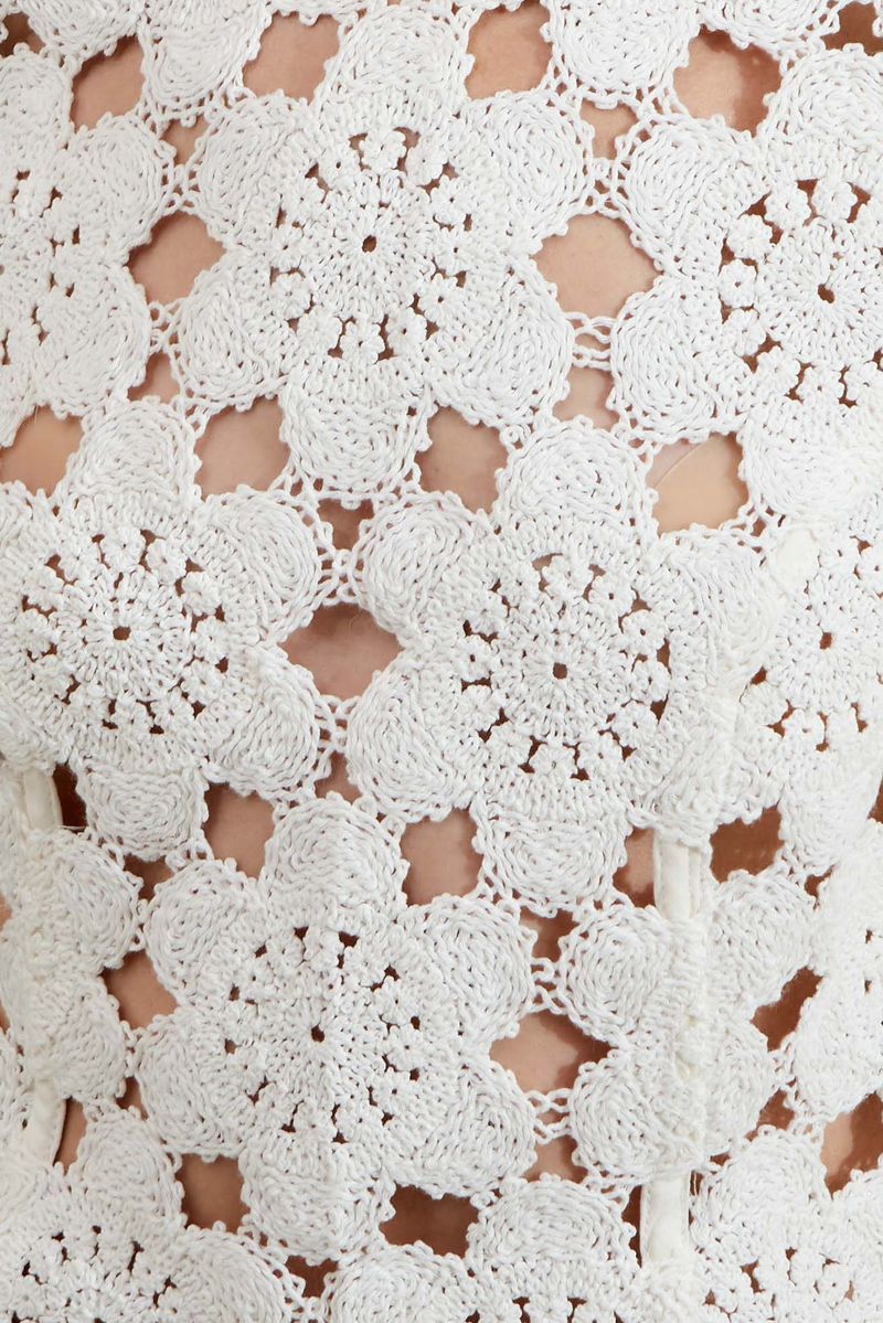 Calça off white desenvolvida em guipure floral especial, forrada. Modelagem reta com pala confortável em tecido de algodão.