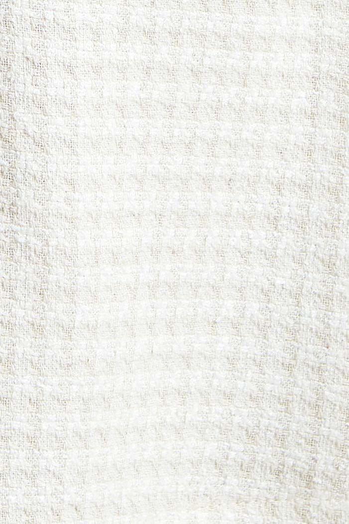 Vestido curto creme em tecido misto com padronagem vichy, corpo ajustado com decote canoa e alças médias. A parte superior em lastex proporciona caimento perfeito, enquanto a saia em formato A com pregas.
